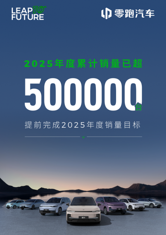 且自今年3月以来,零跑已连续8个月稳居中国新势力月销冠军,从9月首次突破6万台,再到10月继续冲破7万台,接连刷新中国新势力月销纪录。零跑于11月15日提前完成2025年50万台销量目标;2026年将冲刺百万台销量新目标。